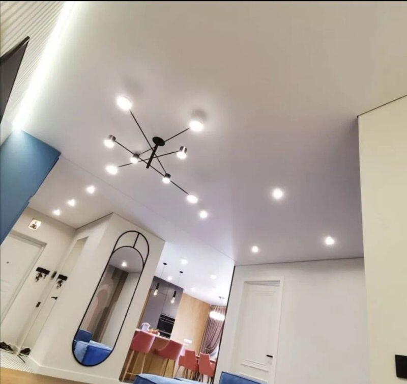 Монтаж натяжных потолков, монтаж осветительных приборов