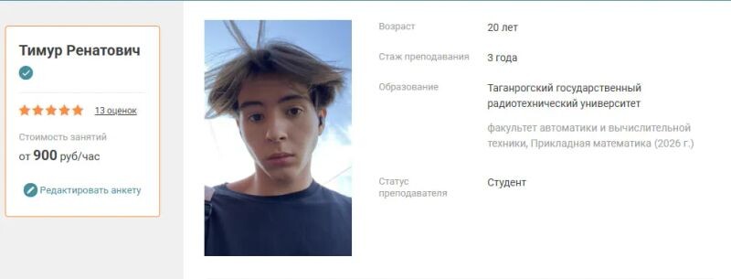 ► Связаться с Абдулиным Тимуром Ренатовичем можно за пару минут. Нажмите на кнопку «Связаться с репетитором» и заполните короткую форму.