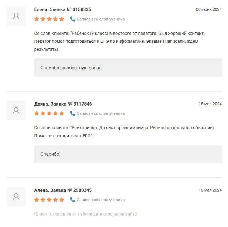 - Частный репетитор, Онлайн-школа «Тетрика», Ассоциация репетиторов — 3 года.
