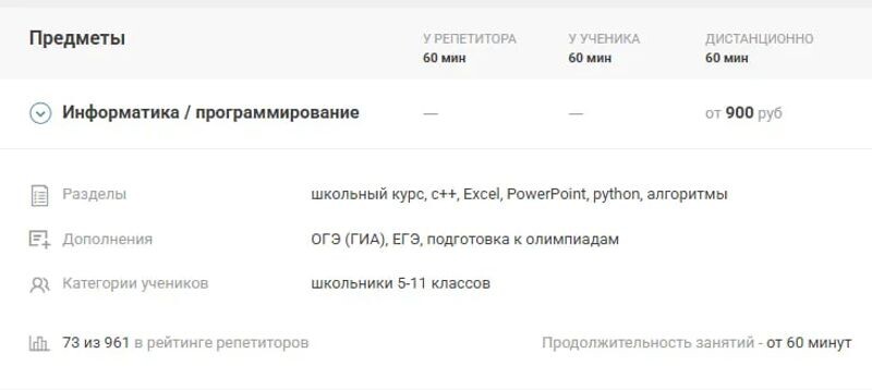 - МЦКО для учителей информатики 1500 ₽ за час