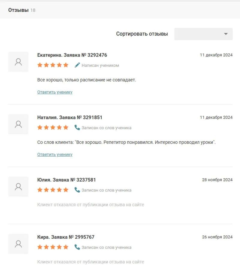 Пока нет ни одного отзыва об этом преподавателе. Ваш отзыв может стать первым!