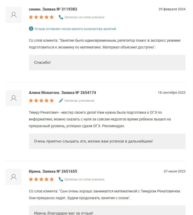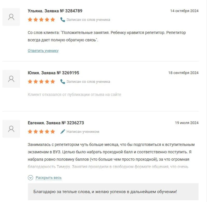 Отзывы о Абдулине Тимуре Ренатовиче