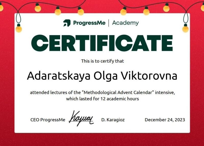 - ProgressMe Academy, интенсив «Методологический адвент-календарь», 2023 г.