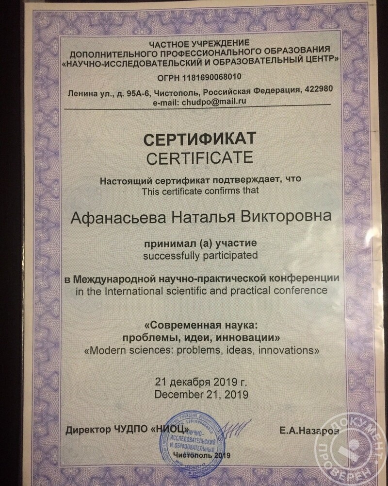 - Институт повышения квалификации и профессиональной подготовки, программа «Учитель истории и обществознания. Теория и методика преподавания учебного предмета «История» и «Обществознание» в условиях реализации ФГОС ООО и СОО», 2019 г.