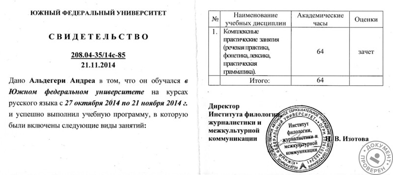 - Курсы русского языка в Южном федеральном университете – Институт филологии, журналистики и межкультурной коммуникации, кафедра русского языка для иностранных студентов, подготовительный факультет, 2014–2016 гг.