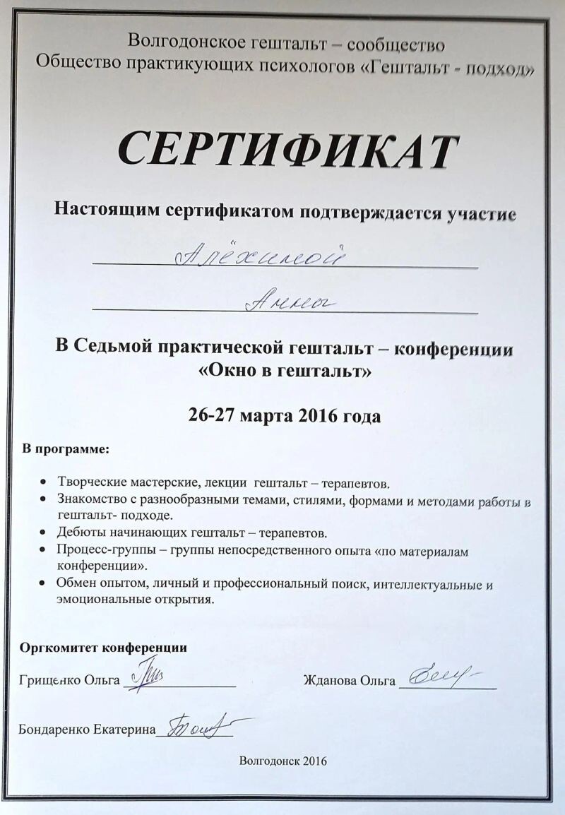 - ОПП «Гештальт-подход», конференция «Окно в гештальт», 2016 г.