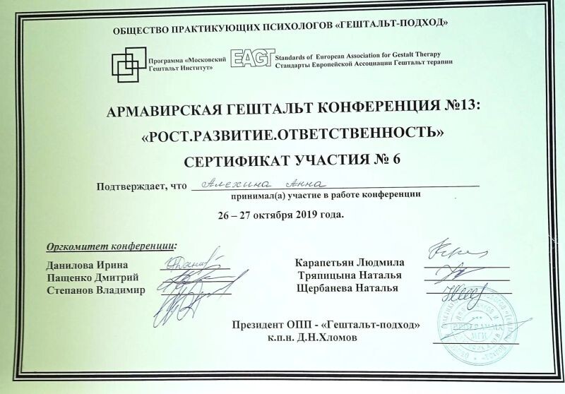 - МГИ, гештальт конференция «Рост. Развитие. Ответственность», 2019 г.