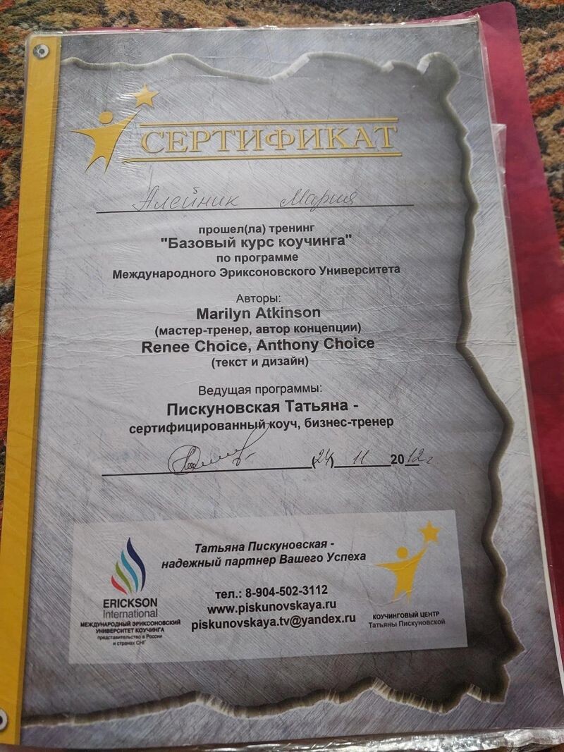 - Коучинговый центр Татьяны Пискуновской, тренинг «Базовый курс коучинга», 2012 г.