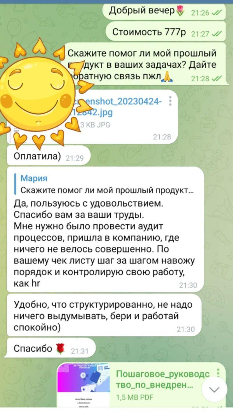 Мария, благодарны вам за оперативность подготовки задач для бизнеса, скорость обратной связи превышает ожидания.