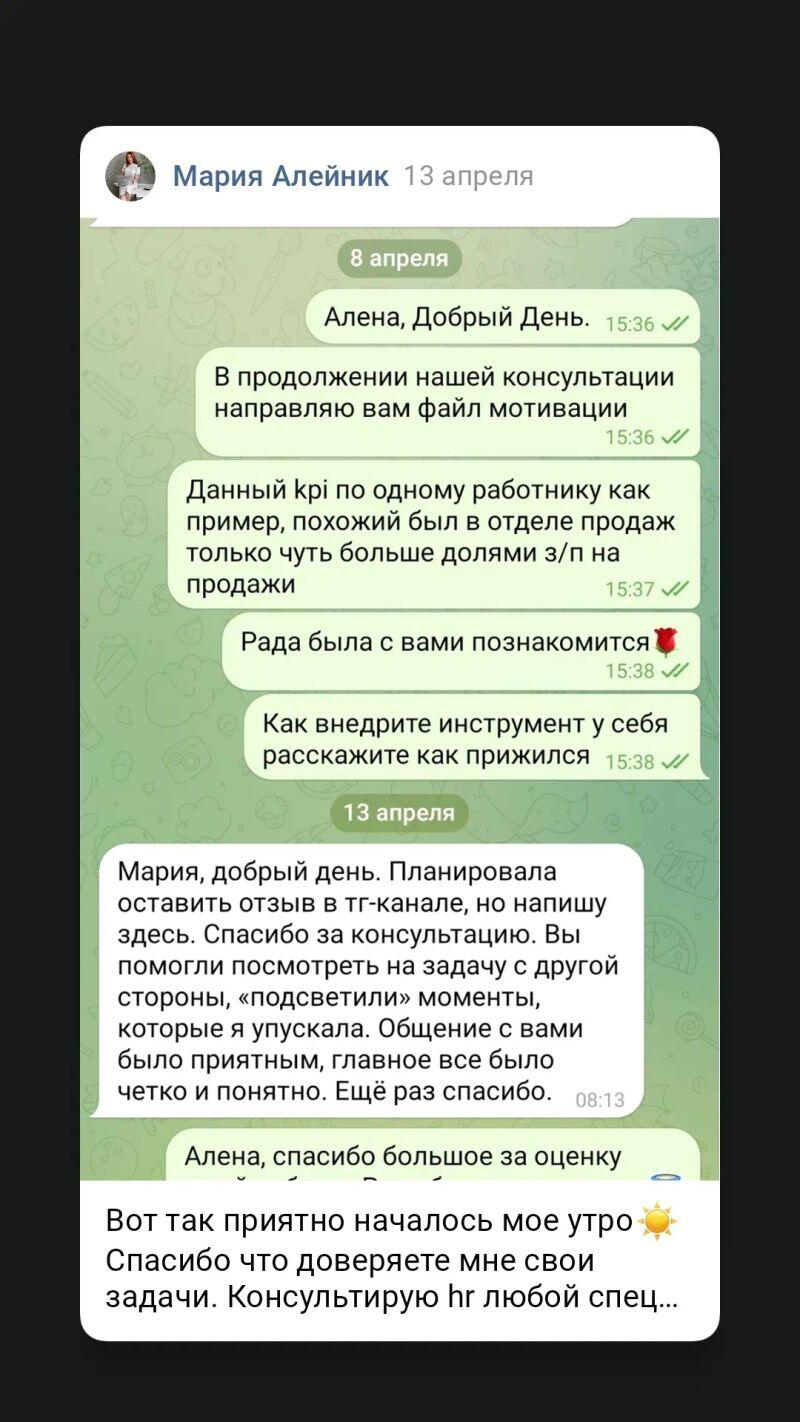 Очень благодарен Марии за проведение персональной стратегической сессии. Благодаря ее подходам и техникам я достиг желаемых результатов.
