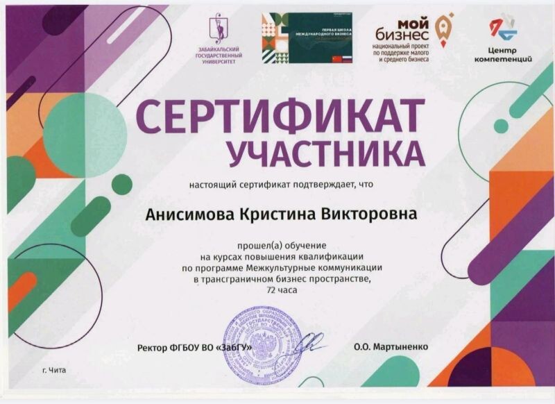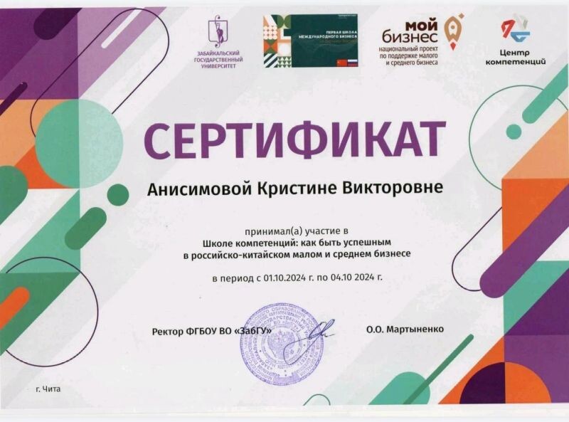 - ФГБОУ ВО «ЗабГУ», Школа компетенций, как быть успешным в российско-китайском малом и среднем бизнесе, 2024 г.