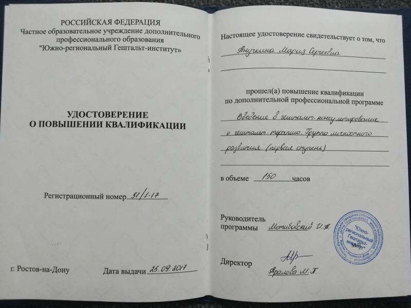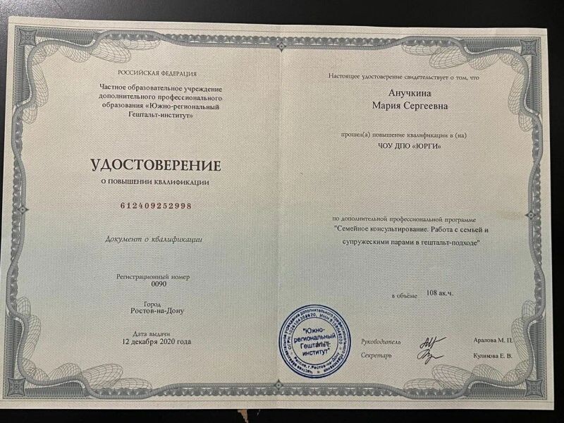 ► Связаться с Анучкиной Марией Сергеевной можно за пару минут. Нажмите на кнопку «Связаться со специалистом» и заполните короткую форму.
