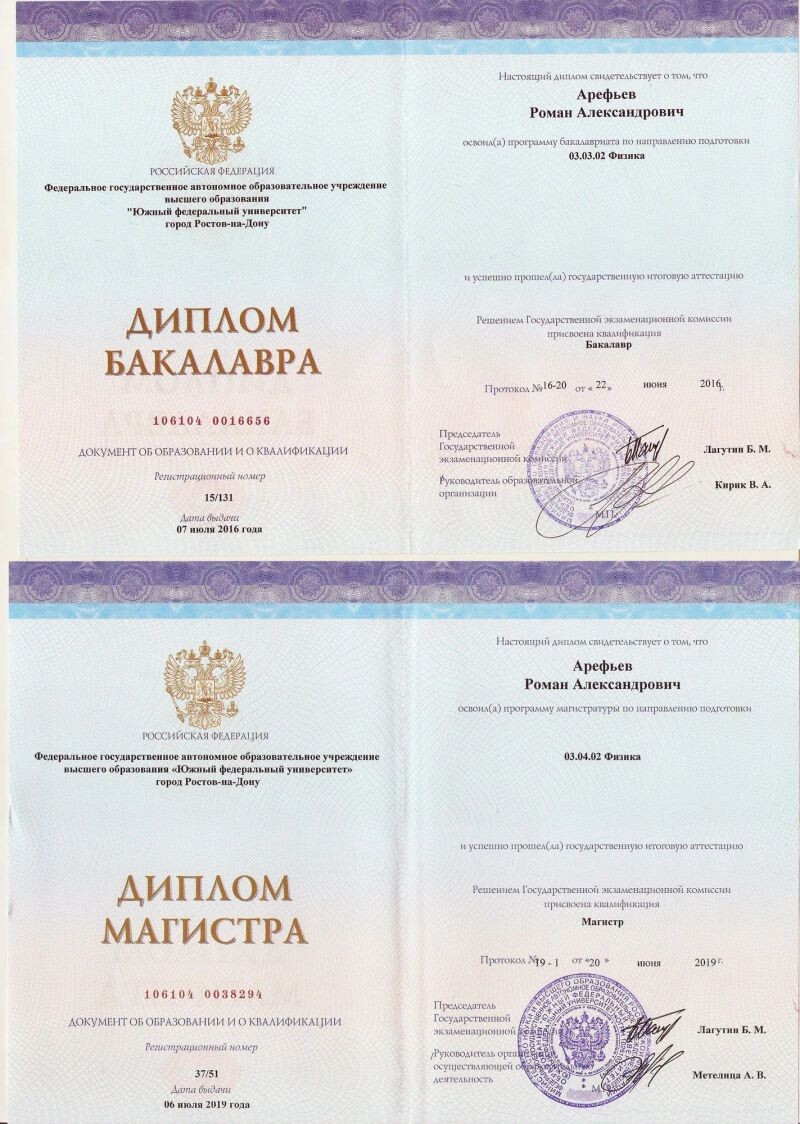 - ЮФУ, бакалавриат и магистратура по направлению «Физика», 2012–2019 гг.