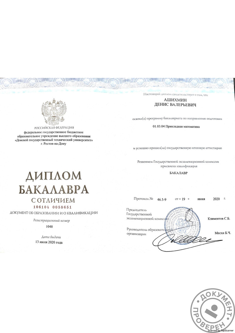 - Донской государственный технический университет, бакалавр, 2016–2020 гг.