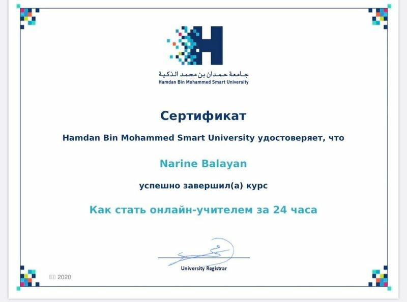 ► Связаться с Балаян Нарине Александровной можно за пару минут. Нажмите на кнопку «Связаться с репетитором» и заполните короткую форму.