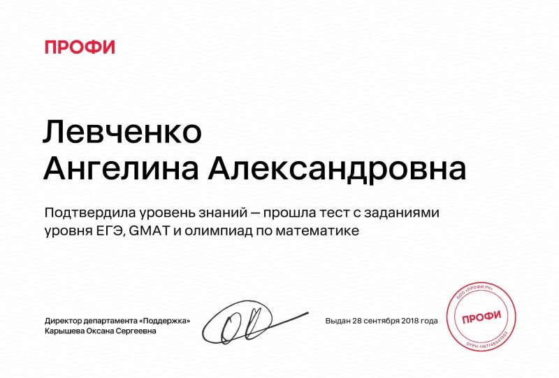 - Подтвердила уровень знаний — Прошла тест с заданиями уровня ЕГЭ, GMAT и олимпиад по математике (с 2018 г.).