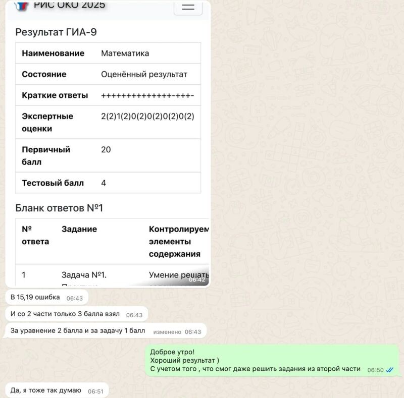 Наша дочь успешно сдала ГИА по математике, и мы очень рады! Ангелина Александровна легко находила контакт с ребенком и психологически ей очень понравилась. Она всегда доходчиво объясняла материал и давала полезные советы по разным темам, что очень помогло в усвоении информации. Каждый урок она готовила много полезной информации по нашим запросам. Она учитывала индивидуальность и уровень знаний ребенка, особое внимание уделяла слабым местам, которые требовали исправления. Она идеально подходит для подготовки к ГИА.