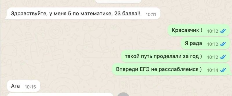 Большое спасибо Ангелине Александровне за отличное преподавание! За год работы мы смогли догнать все пропущенное и повысить свой уровень математики с тройки до пятерки. А особенно полюбили алгебру, чего не ожидали. Рекомендуем ее всем!
