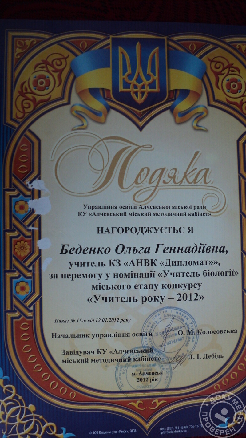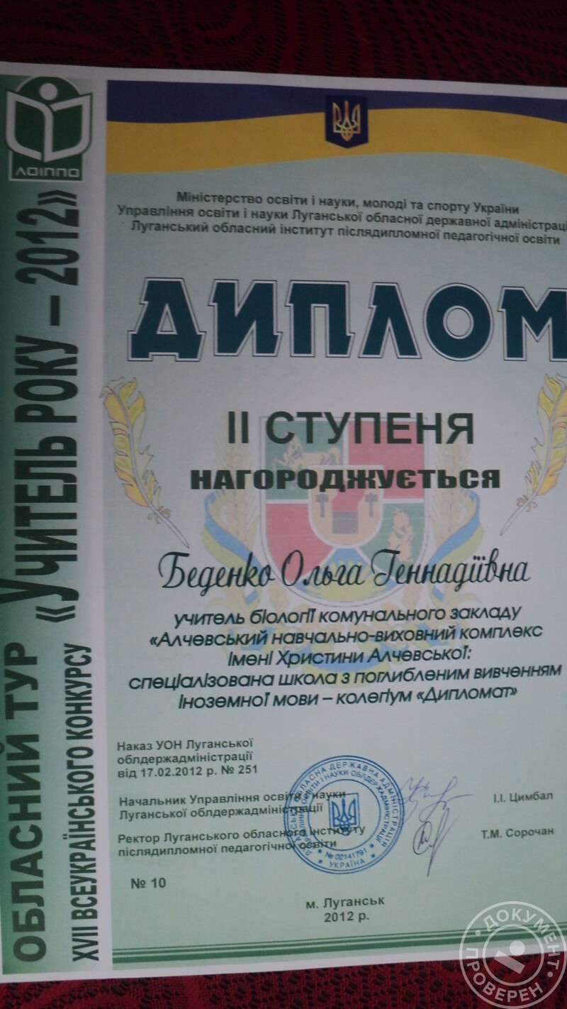 - Работает учителем химии и биологии в г. Алчевске — 29 лет.