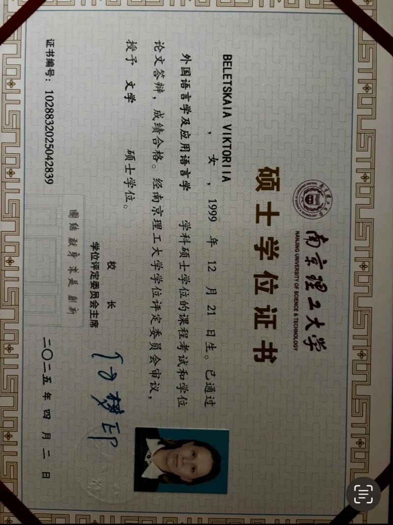 - 南京理工大学, Нанкинский университет науки и технологий, Китайская народная республика, город Нанкин, 2022–2025 гг.