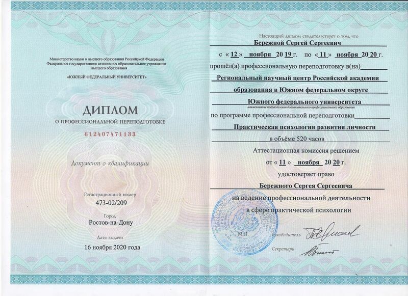 ► Бережной Сергей Сергеевич принимает территориально: г. Ростов-на-Дону, а также проводит онлайн-консультации.