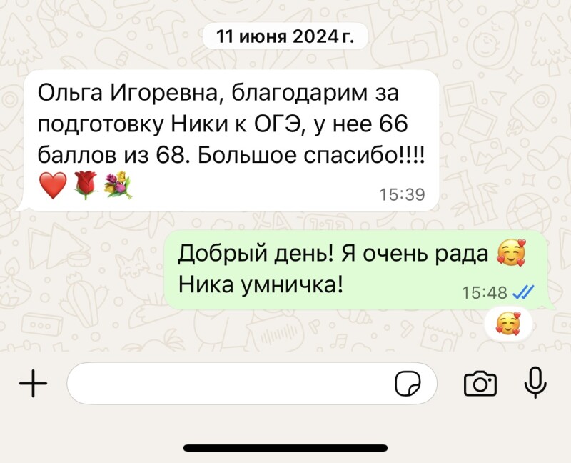 Меня зовут Ольга Игоревна, я - учитель английского языка с профильным образованием и опытом работы, в том числе успешной подготовки к экзаменам (ЕГЭ, ОГЭ)🇬🇧