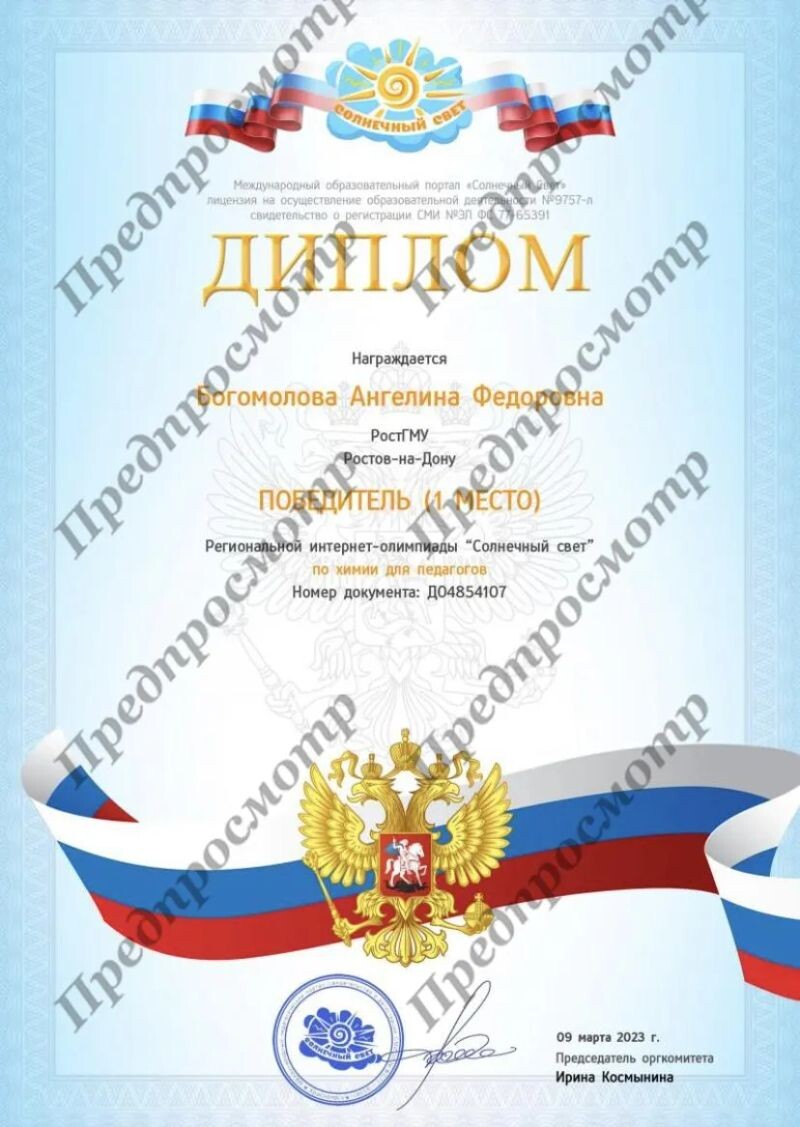 - Победитель олимпиада по химии для педагогов, 2023 г.