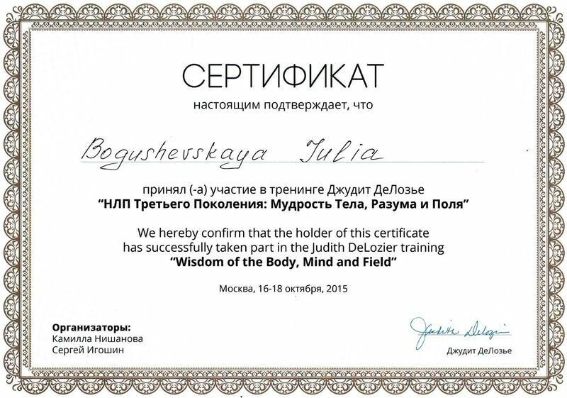 - Тренинг Джудит ДеЛозье «НЛП третьего поколения», 2015 г.