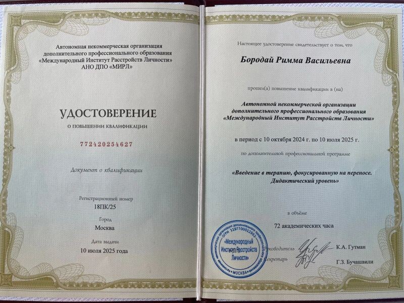 ► Связаться с Бородай Риммой Васильевной можно за пару минут. Нажмите на кнопку «Связаться со специалистом» и заполните короткую форму.