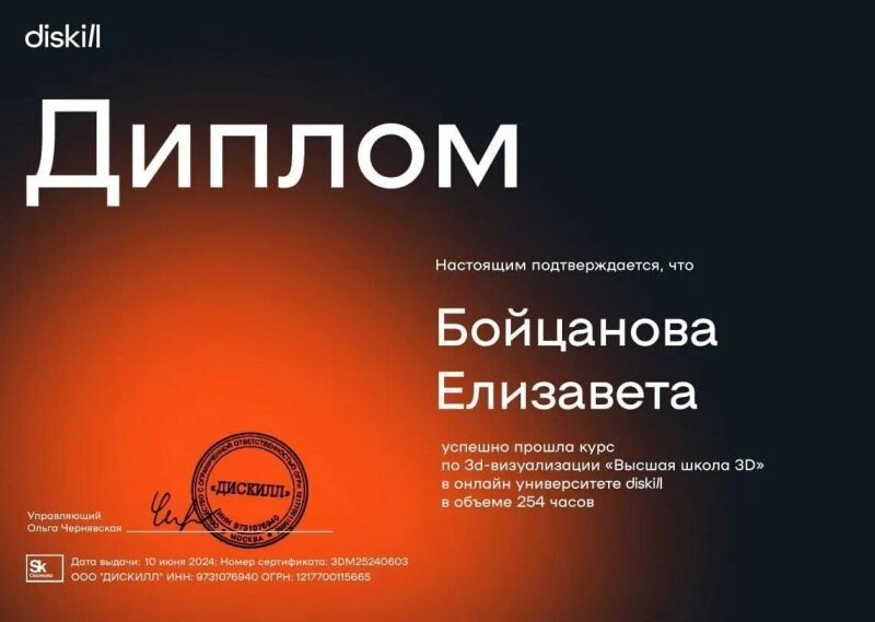 - Школа Diskill, 3d-визуализация «Высшая школа 3D», 2022–2024 гг.