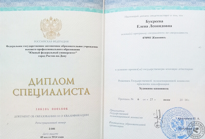 - Южный федеральный университет г. Ростов-на-Дону, живопись, 2008–2014 гг.