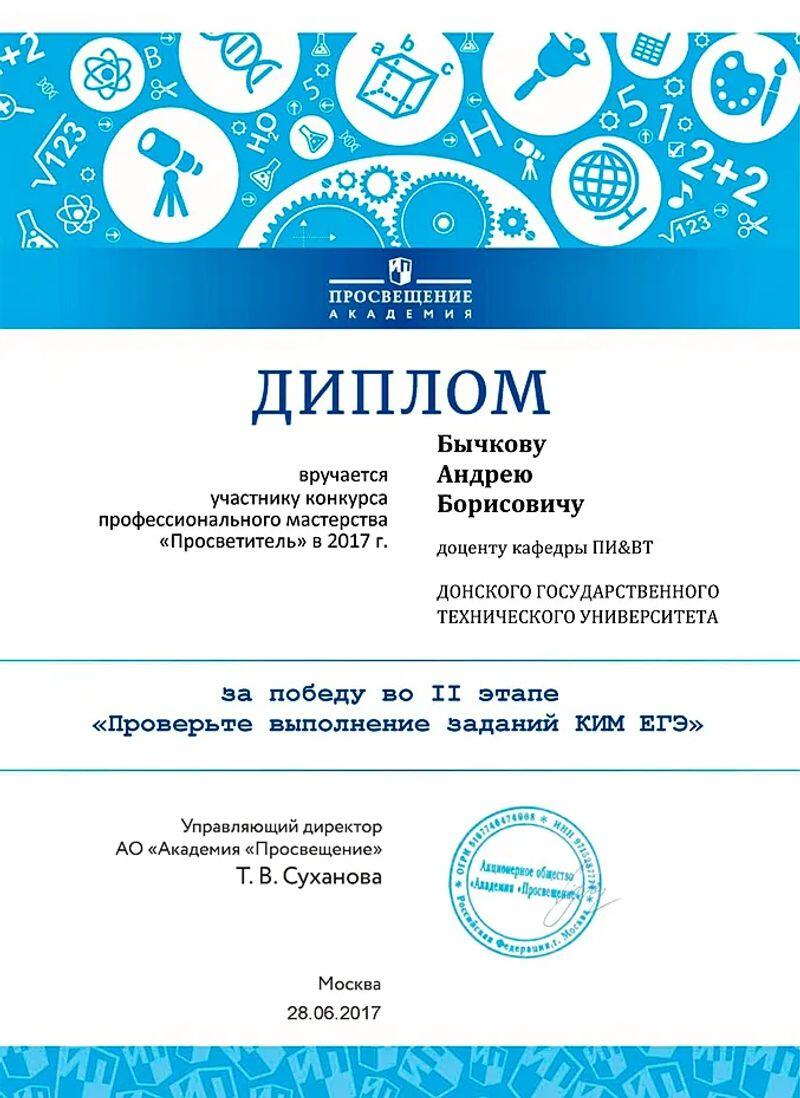 - Победитель II этапа всероссийского конкурса профессионального мастерства «Просветитель», 2017 г.