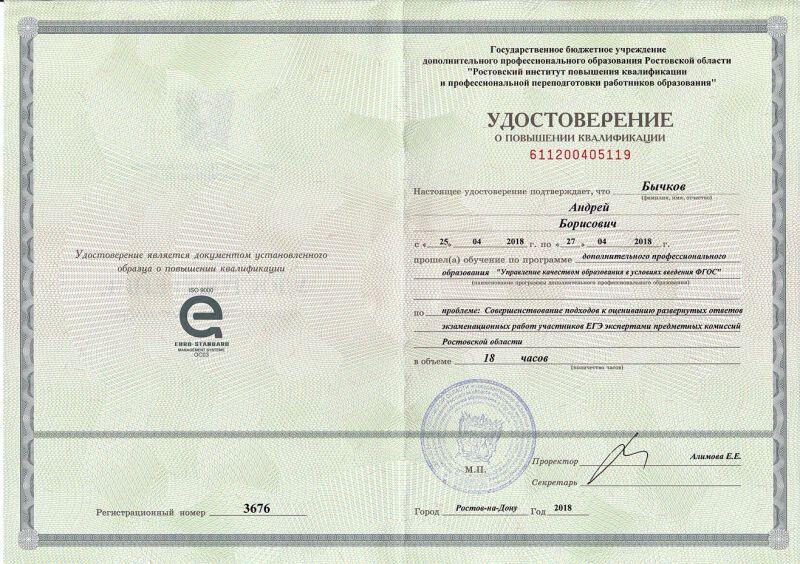 - Ростовский институт повышения квалификации и профессиональной переподготовки работников образования, управление качеством образования в условиях введения ФГОС, 2018 г.