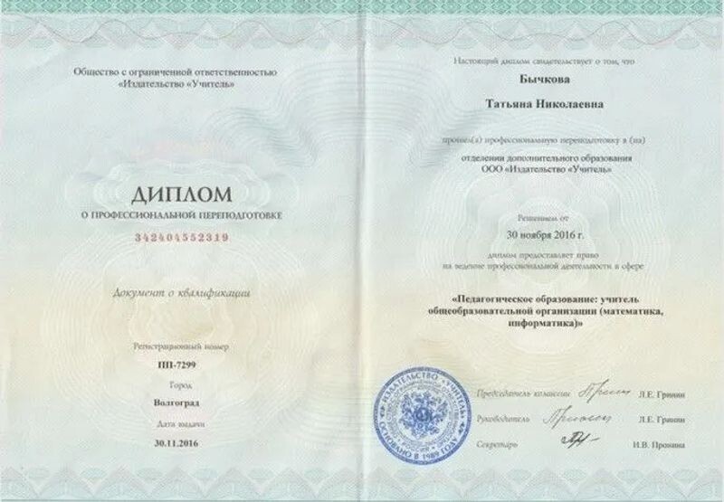 - Повышение квалификации по теме " Школа современного учителя математики " (с 2021 г.).