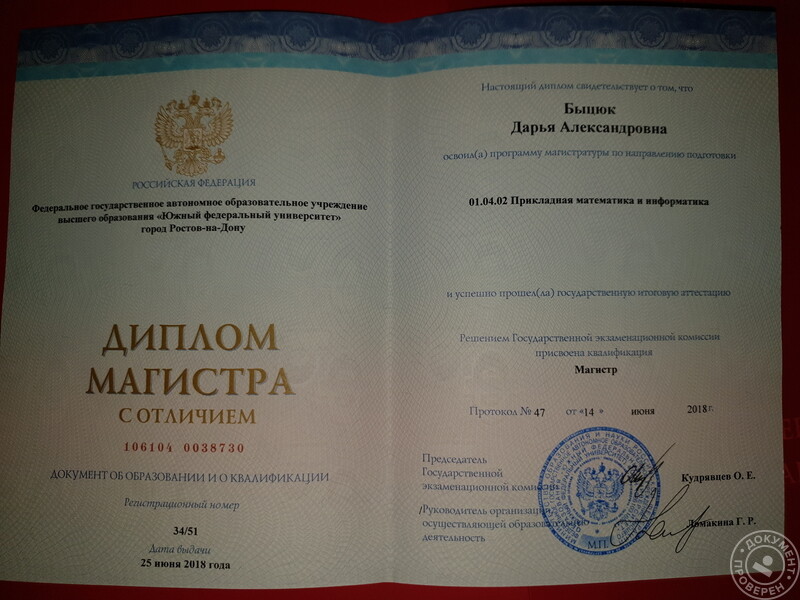 - Институт математики, механики и компьютерных наук им. И.И. Воровича ЮФУ, магистр, 2018 г.