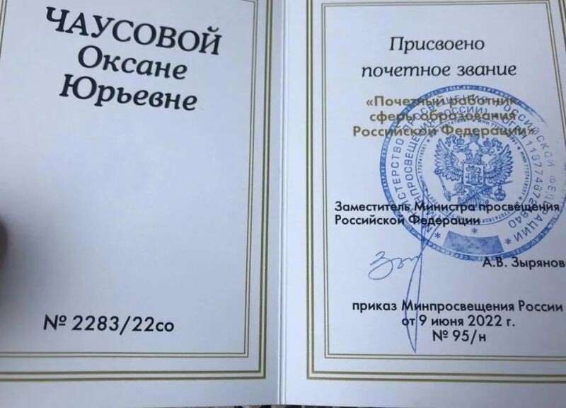 - Минпросвещения России, почётный работник сферы образования РФ, 2022 г.