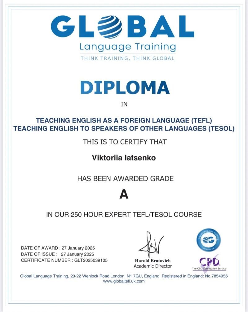 - EXPERT TEFL/TESOL (Grade A), 2025 г.