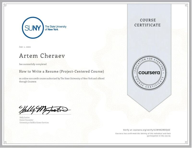 - SUNY, How to Write a Resume (Project-Centered Course), 2020–2021 гг.