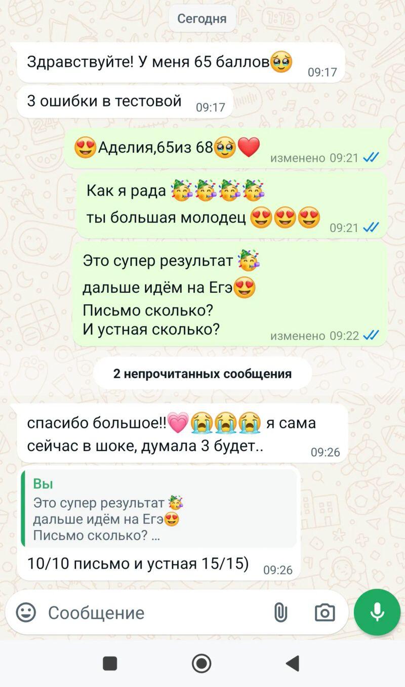 - ЕГЭ 1000 - 1500 ₽ за часИмею отличным опыт подготовки к Егэ!Доступно объясняю грамматику английского.яз помогаю устранить все недопонимания в её изучении.ставлю четкое произношение, корректирую чтение и ставлю грамотную устную речь! ...
