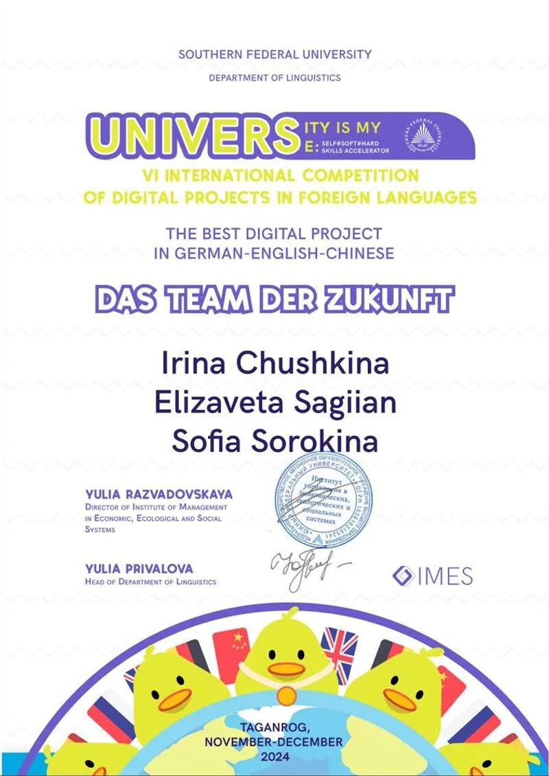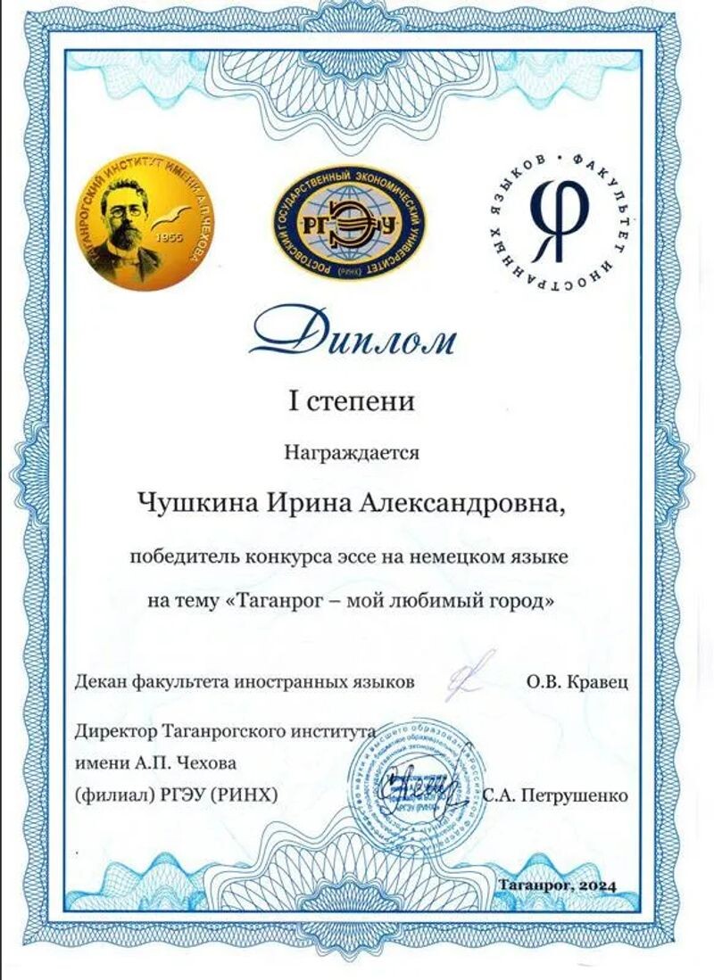 - Конкурс эссе на немецком языке «Таганрог — мой любимый город» (с 2024 г.).