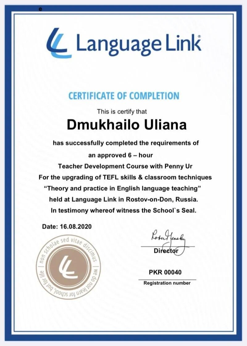 - Language Link, Teacher Development Course, 2020–2022 гг.