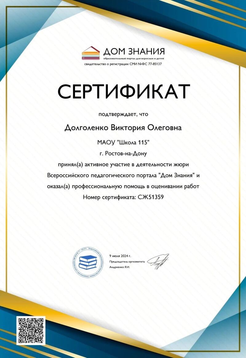 - Дом знания, участие в деятельности жюри, помощь в оценивании работ, 2024 г.