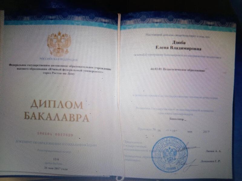 - ФГАОУ "Южный федеральный университет" г Ростов-на-дону 44.03.01 Педагогическое образование Математика, 2012–2017 гг.