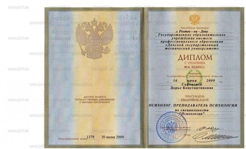 - Донской государственный технический университет, психолог, преподаватель психологии, 2004–2009 гг.