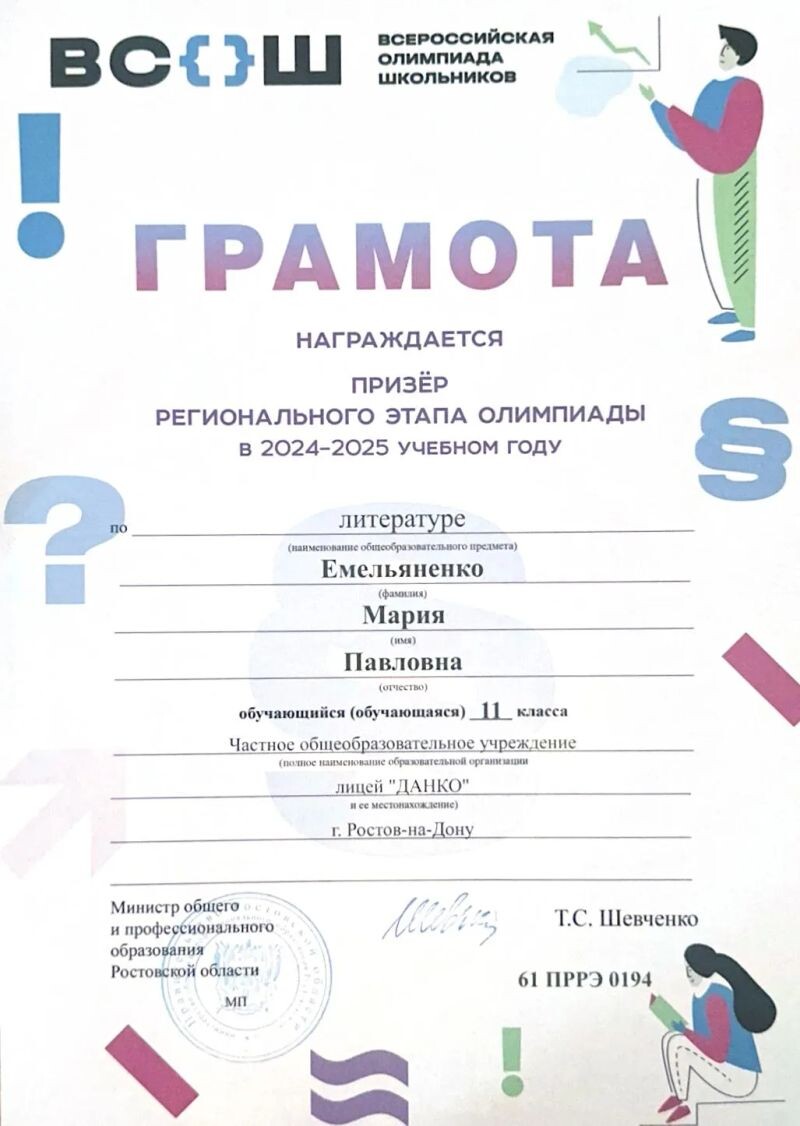 - Я являюсь призером регионального этапа ВСОШ по литературе 🌟 (с 2025 г.).