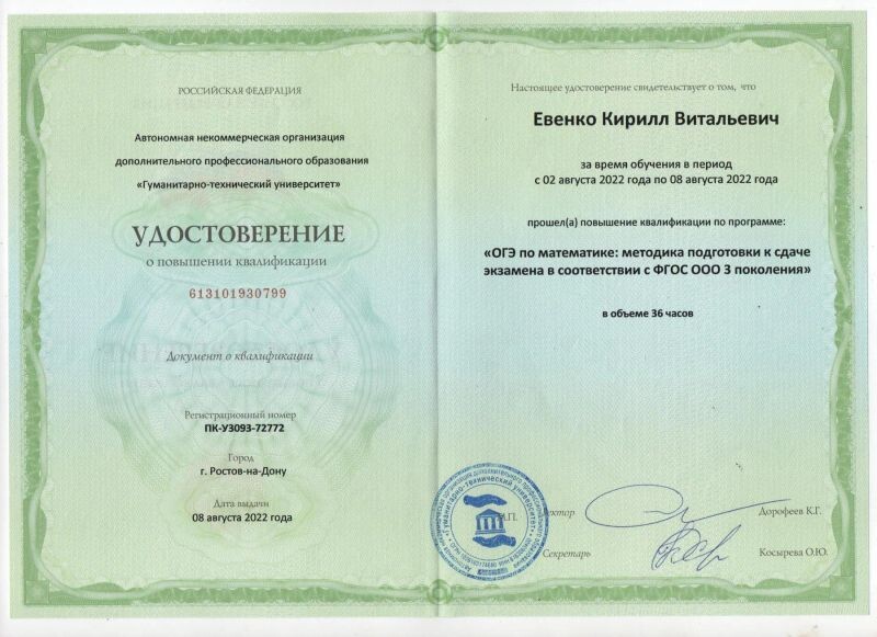 ► Евенко Кирилл Витальевич проводит занятия территориально: г. Ростов-на-Дону, а также дистанционно в онлайн-формате.