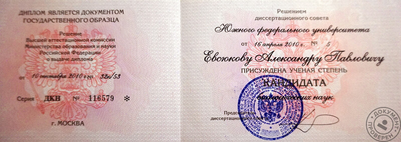 - Окончил биолого-почвенный факультет Южного федерального университета по специальности «биология» в 2005 году.