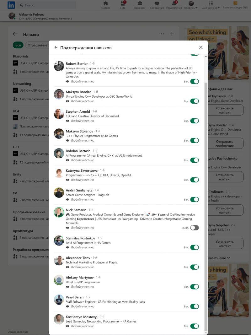 - Vostok Games: UE4, C++/BP, Gameplay/Network, Programmer, 2017–2019 гг.