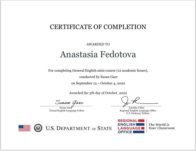 - U.S. Department of State, мини-курс «Общий английский язык», 2022 г.