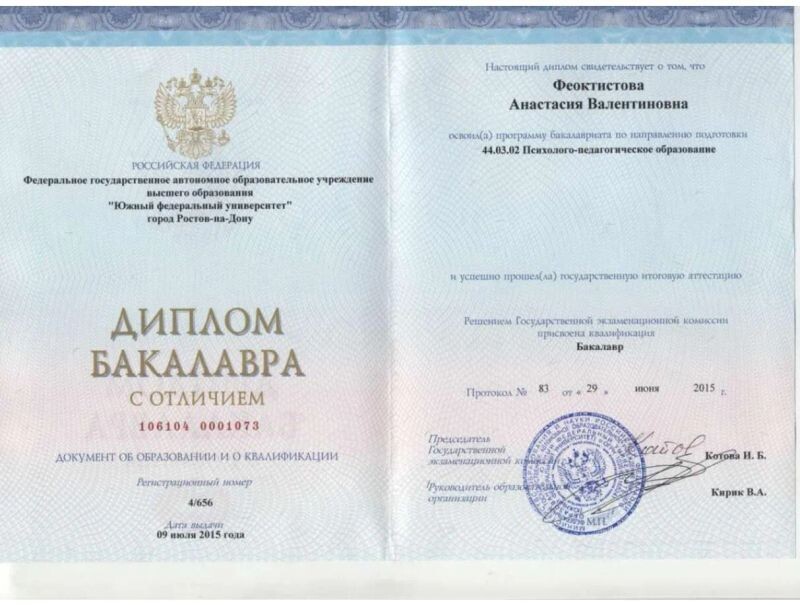 - Южный Федеральный Университет, Психолого-педагогическое, 2011–2015 гг.